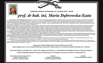 Prof. dr hab. inż. Maria Dąbrowska-Szata urodziła się 31.12.1946 r. w Opolu. Była absolwentką Wydziału Elektroniki i Studium Podstawowych Problemów Techniki PWr (1970 r.). Rozprawę doktorską „Badanie powierzchni krzemu przy użyciu metod elektronograficznych” obroniła w 1978 r. w Instytucie Technologii Elektronowej PWr. Stopień doktora habilitowanego uzyskała na Wydziale Elektroniki w 2000 r. na podstawie monografii „Dyfrakcja odbiciowa elektronów o dużej energii w badaniach powierzchni ciała stałego”. W 2007 r. została mianowana na stanowisko profesora nadzwyczajnego. Tytuł profesora nauk technicznych otrzymała w 2010 r.