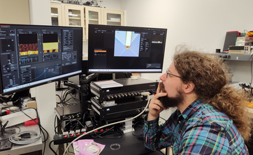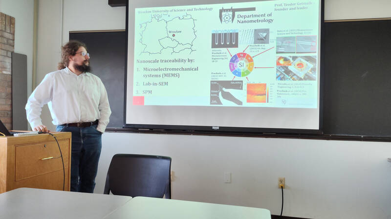 Since October 1st Bartosz Pruchnik is visiting University of Texas in Austin. He joined MINIMAX group led by Fangzhou Xia PhD. Group's focus is on mechatronic solutions for micro and nanoscale (group webpage: https://minimax-lab.com/). During his stay dr Pruchnik participates in development of high-speed parallel scanning probe microscopy, Quantum Twisting Microscopy, also he leads efforts towards design of novel MEMS probes for cryogenic applications. As for now, he was part of AFM training and FEM modelling activities. He presented his and Department of Nanometrology achievements during group seminar. Visit is planned to last another 5 months. Visit was enabled by the Kościuszko Foundation in Exchange to the US program.